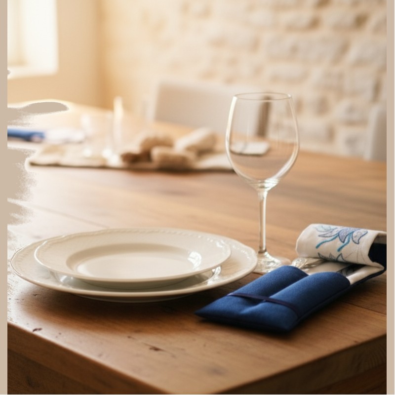 Et donc une table minutieusement préparée avec ces portes couverts habillés d'une délicate broderie faite main.