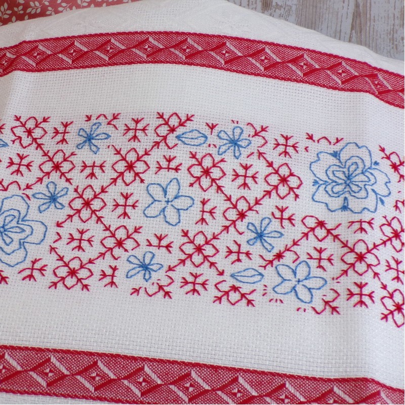 La broderie est réalisée directement sur le torchon.