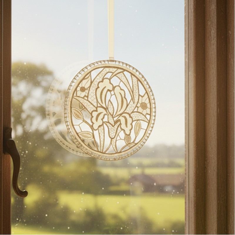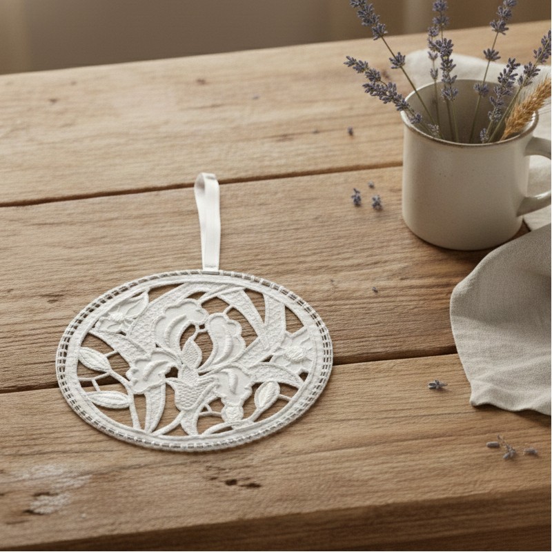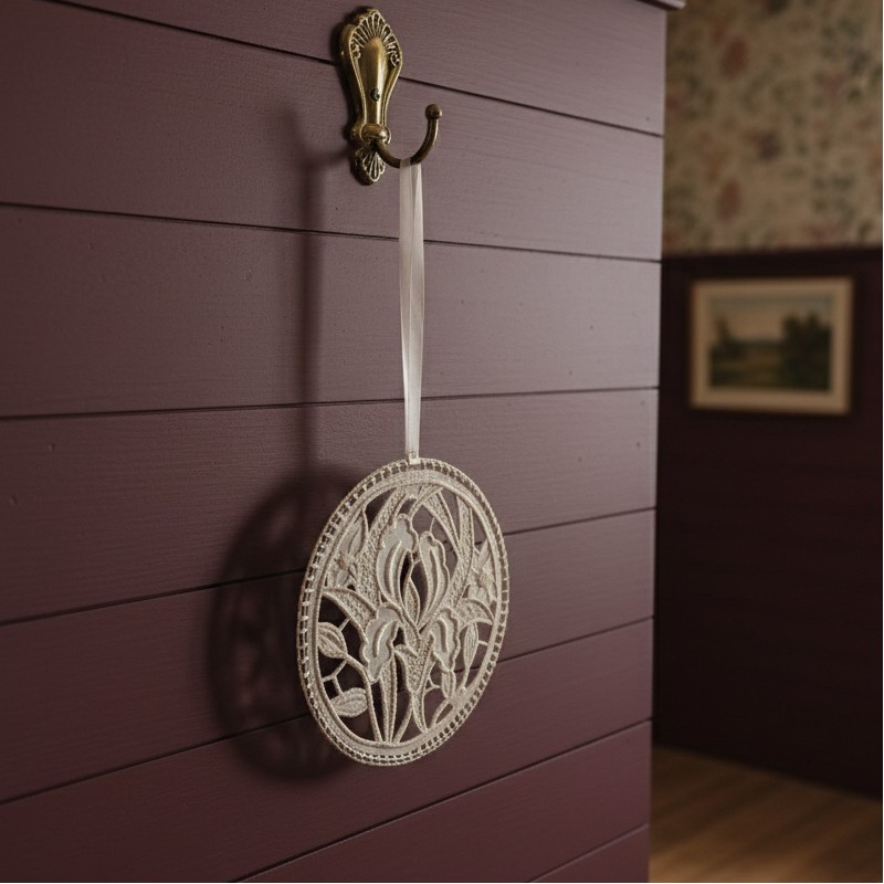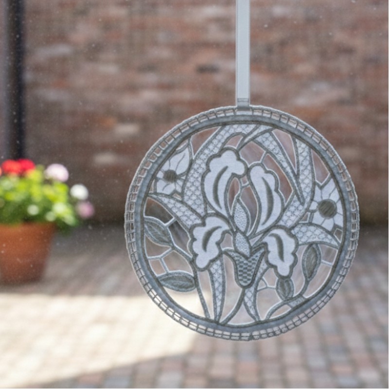 Et pour ce faire, il se présente sous forme d’une délicate broderie à suspendre où chaque ouverture joue à cache-cache avec