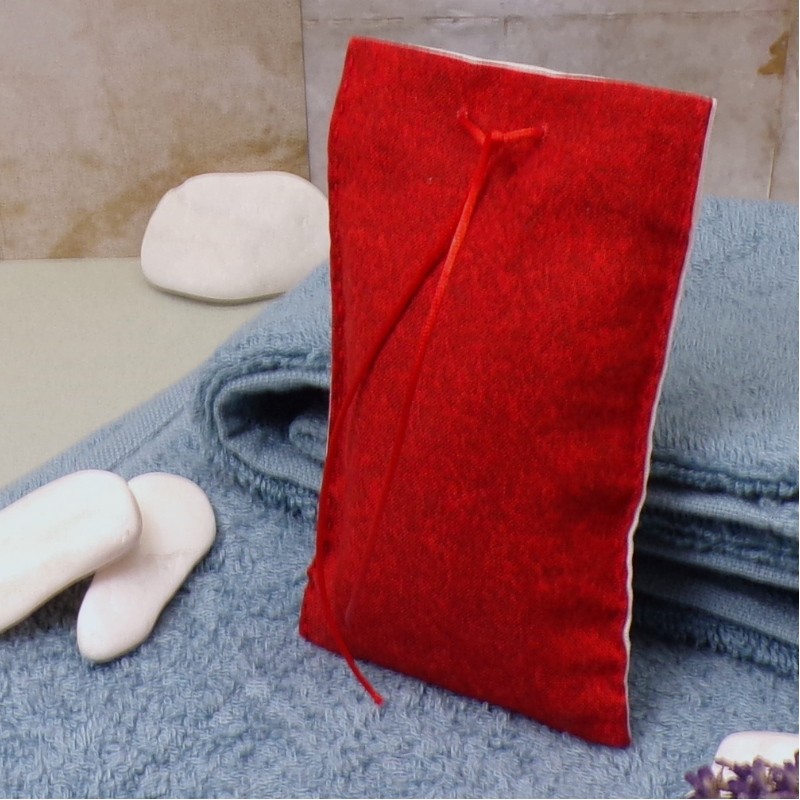 La fermeture du sachet extérieur est assurée par des liens permettant une ouverture et une fermeture à la fois aisée de la pochette pour renouveler la lavande.