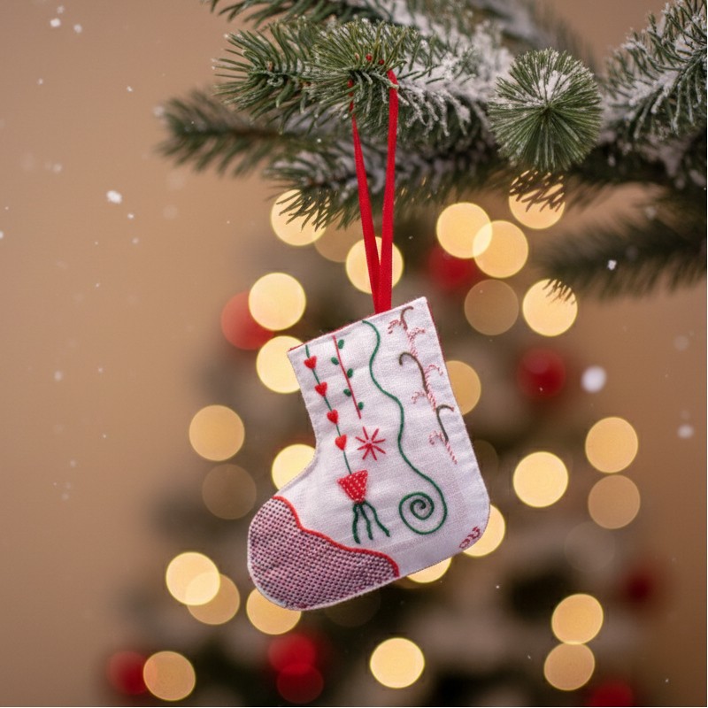 Un ruban en satin permet de suspendre la décoration sur les branches du sapin, les poignées de porte ou fenêtres.