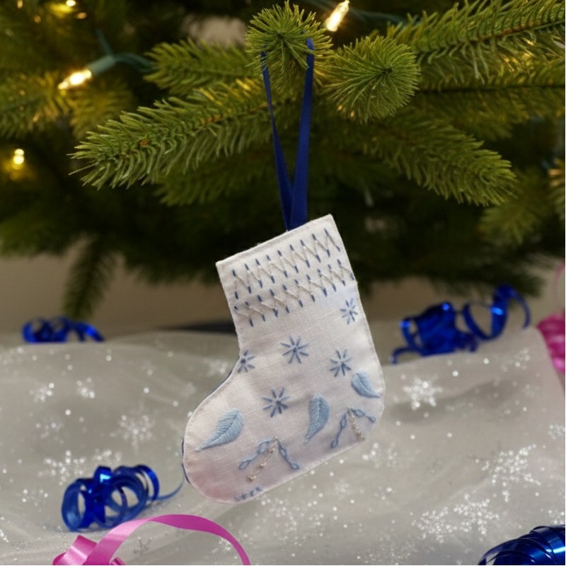 Son bleu rehaussé d’un fil argenté lui permettent de briller au milieu des autres décorations de la maison.